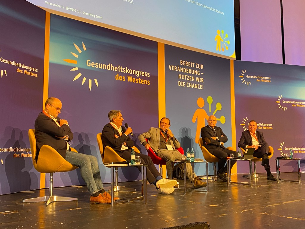 Dieser Frage gingen Experten auf dem Gesundheitskongress des Westens nach: René Thiemann, Geschäftsführer der Hüttenhospital gGmbH und Geschäftsführer des städt. Krankenhaus Maria-Hilf Brilon gGmbH, Sassan Pur, Geschäftsführer der Hessenklinik Stadtkrankenhaus Korbach gGmbH, Thomas Bublitz, Hauptgeschäftsführer Bundesverband Deutscher Privatkliniken e.V., Prof. Dr. Dr. Dr. h.c. Eckhard Nagel, Geschäftsführender Direktor Institut für Medizinmanagement und Gesundheitswissenschaften Universität Bayreuth, moderiert von Prof. Dr. Rolf G.Heinze, Seniorprofessor der Fakultät für Sozialwissenschaften der Ruhr-Universität Bochum.